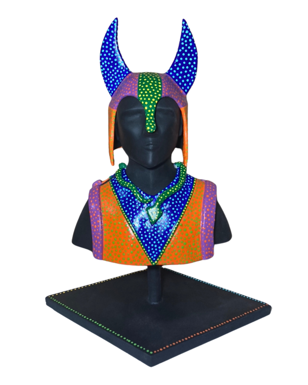 A trav és de la propuesta del diseño de un personaje deseado, se diseñó una armadura compuesta de papel maché cubierto de arcilla, posteriormente pintado de acuerdo al diseño propuesto. El proceso de fabricación del maniquí fue a base de espuma pantera rosa cubierto de arcilla.